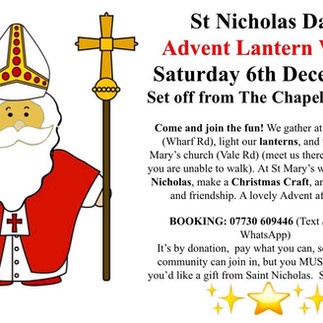 Lantern Walkers meet at The Chapel (Wharf Road) 4:30pm to collect your lantern and glow stick, and we set off at 4:45. Be sure to dress for the weather!